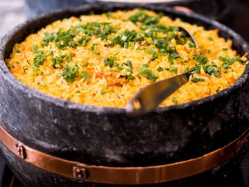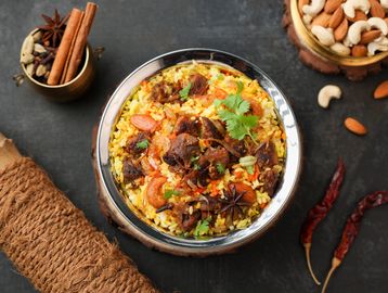 A royal treat in every bite — fluffy basmati rice gently infused with fragrant saffron, served alongside succulent mutton slow-cooked in a rich, aromatic curry. A perfect balance of flavor and indulgence, crafted to delight your senses.