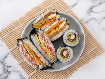 A modern twist on sushi, featuring layers of seasoned rice, fresh fish or veggies, and vibrant sauces, all neatly pressed between crisp nori or bread-like layers. Bite into a fusion of flavors and textures that’s as fun to eat as it is delicious!