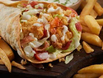 Tender, spiced chicken wrapped in a warm tortilla with a medley of fresh veggies, french omlet zesty sauces, and a hint of international flavors. A delicious fusion of taste and texture, perfect for a satisfying, handheld meal!