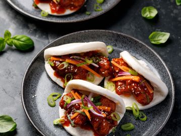 Tender, juicy chicken tossed in a flavorful Korean-style marinade, served inside a soft, fluffy steamed bun with seasoned sticky rice, fresh crisp veggies, and a hint of sweet-spicy sauce. A delicious fusion bite that’s bursting with flavor in every mouthful!