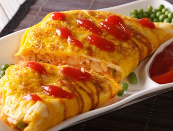 A soft, silky omelette blanket laid over seasoned tomato fried rice, topped with house-made Japanese-style demi-glace sauce. Garnished with spring onions and sesame seeds. A comforting,-worthy classic!